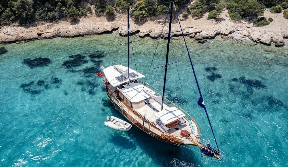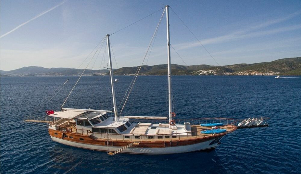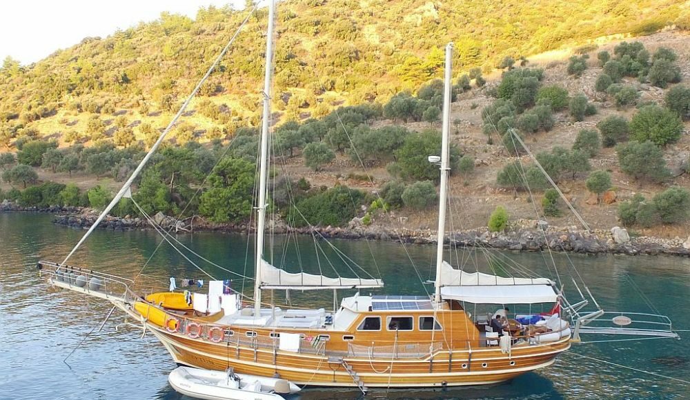 General Specifications 6 cabins (Double bed),Each cabin with separate shower and Electric Type toilet Front deck seating area, Outdoor dining table, Dining table in saloon. Each cabins : Air condition in cabins. Equipments & Extras DVD player, Ice maker, Deep Freezer, Coffee machine, Fishing equipment, Snorkeling equipment, Canoe, Windsurf, Service boat & outboard.