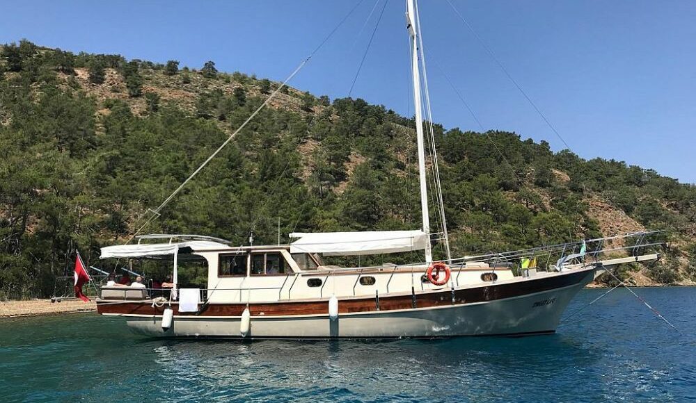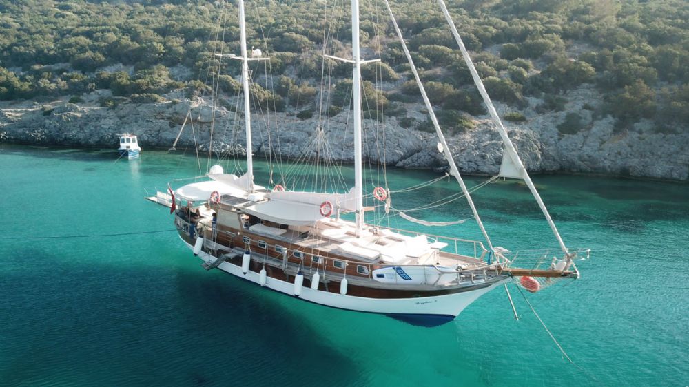 General Specifications 2 cabins (Double bed), 1 Master cabin, cabin with separate shower and toilet Sunbathing mattrasses, Outdoor dining table, Dining table in saloon, Separate crew cabin. Each cabins : Hair dryer. Equipments & Extras DVD player, Deep Freezer, Refrigerator, Fishing equipment, Snorkeling equipment, Canoe, Service boat & outboard.