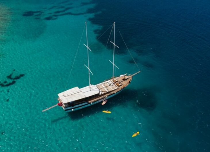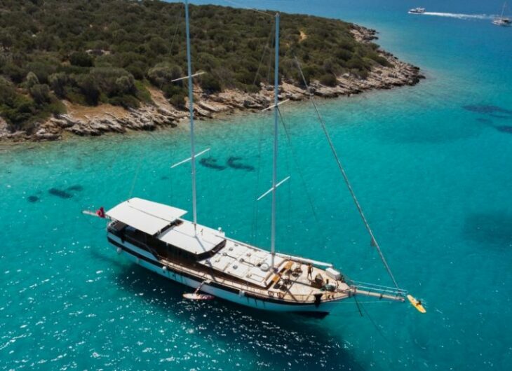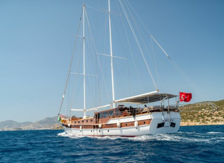 7 Double+ sng bed, 2 cabins (Double bed), Each cabin with separate shower and Home Type toilet Sunbathing mattrasses, Front deck seating area, Outdoor dining table, Dining table in saloon, Music system in saloon, Separate crew cabin. Each cabins : Air condition in cabins.