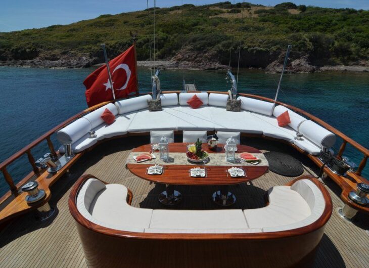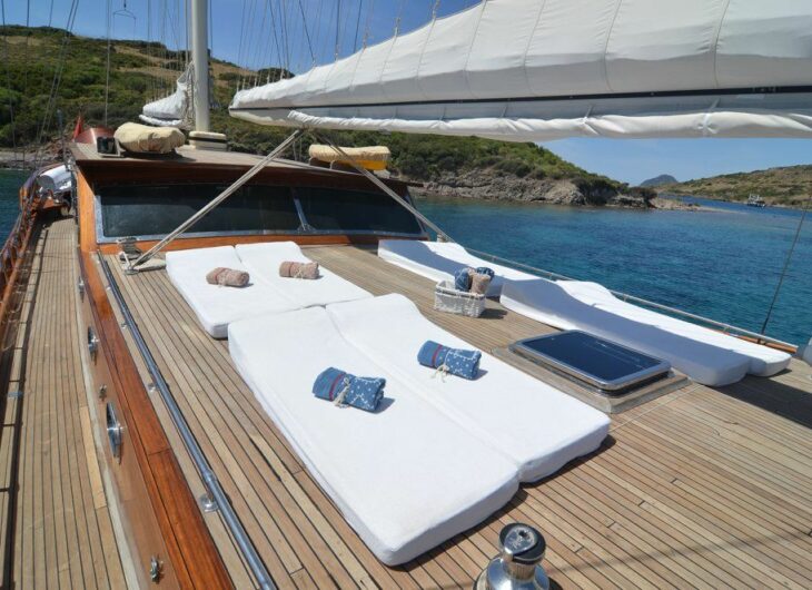 DVD player, Wi-fi connection (Turkish waters), Ice maker, Water maker, Deep Freezer, Coffee machine, Fishing equipment, Snorkeling equipment, Canoe, Waterski, Ringo, Wakeboard, Service boat & outboard.