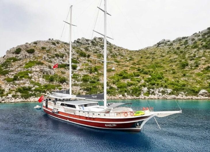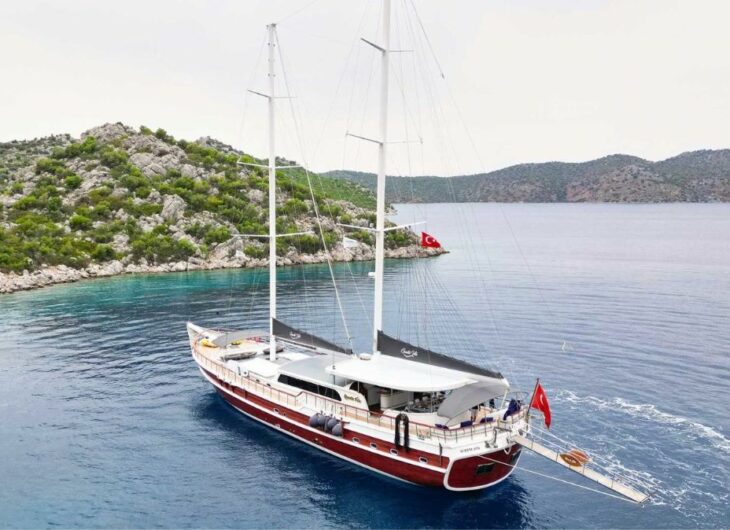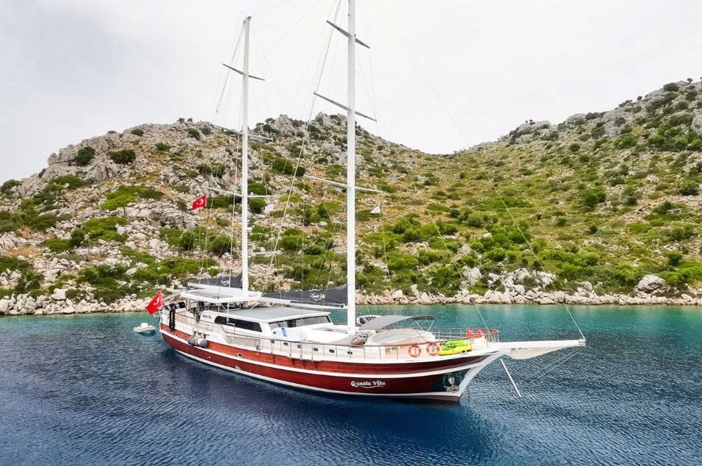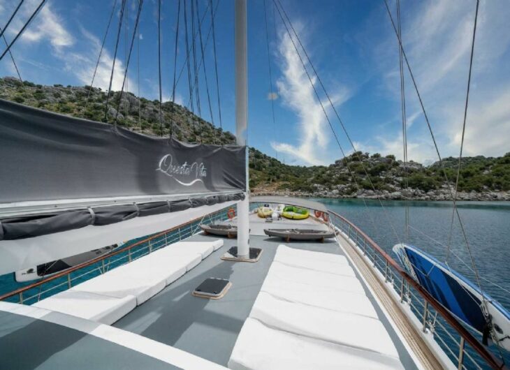 Sunbathing mattrasses, Front deck seating area, Outdoor dining table, Dining table in saloon, Music system in saloon, Separate crew cabin.