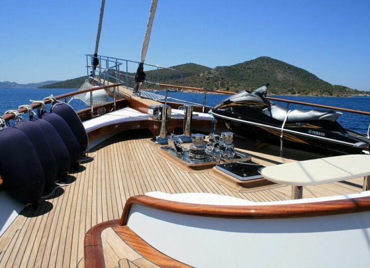 Navigation equipment, Inverter, Ice maker, Water maker, Deep Freezer, Washing machine, Full Sailing Equipments, Fishing equipment, Snorkeling equipment, Canoe, Windsurf, Waterski, Jetski, Ringo, Banana, Backgammon and playing cards, Sun Loungers on upper deck, Service boat & outboard.