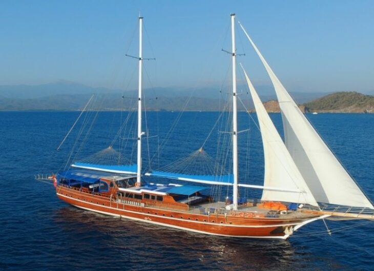 Sunbathing mattrasses, Front deck seating area, Outdoor dining table, Dining table in saloon, Seating area in salon, Music system in saloon, Separate crew cabin.