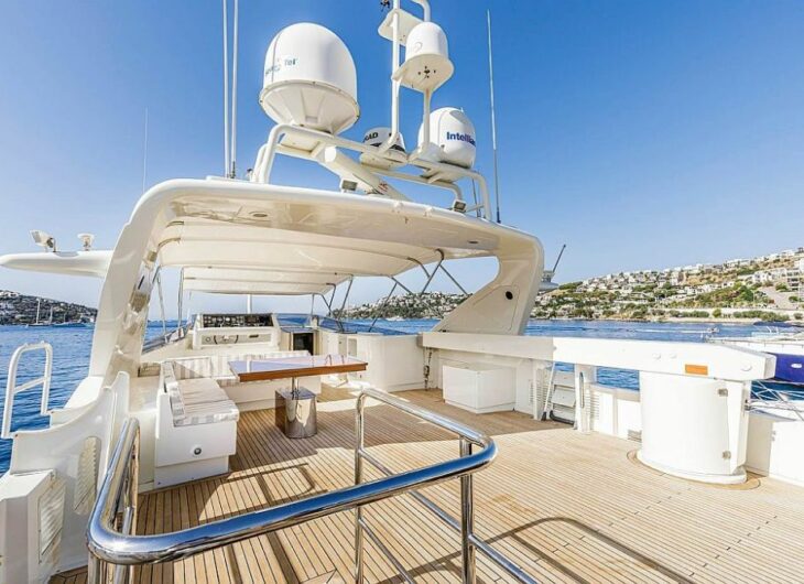 LCD TV in cabins, Flybridge, Front deck seating area, Outdoor dining table, Dining at Flybridge, Dining table in saloon, Separate crew cabin.