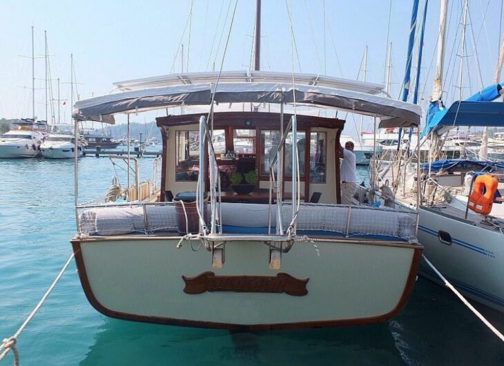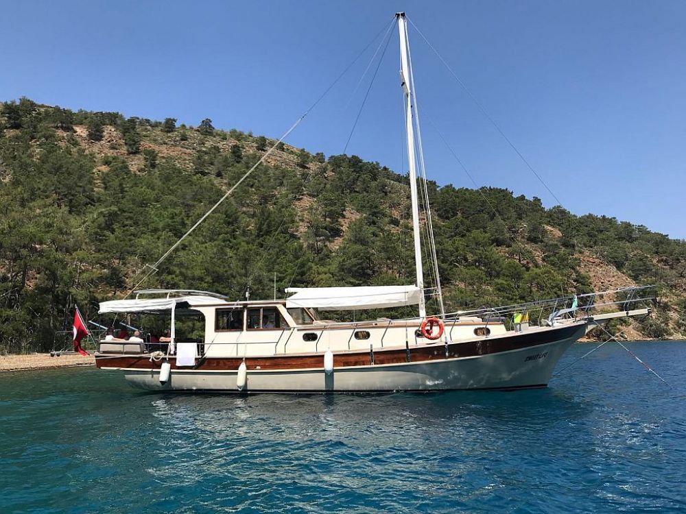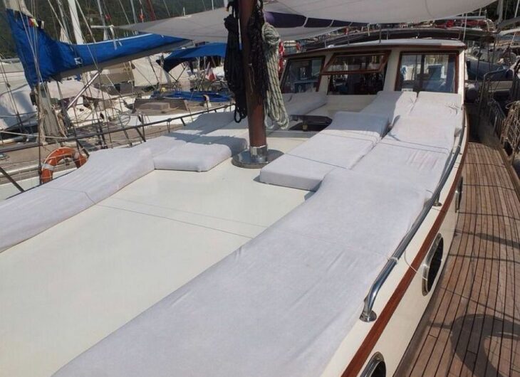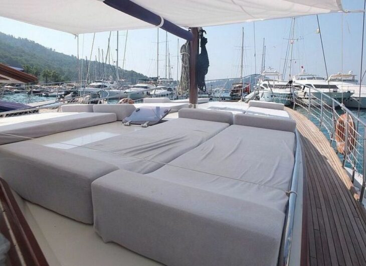 Outdoor dining table, Music system in saloon, Separate crew cabin.