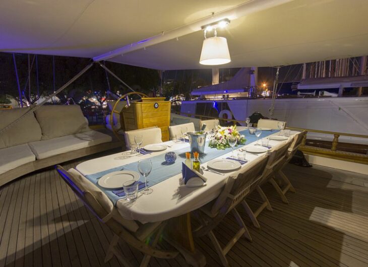 Wi-fi connection (Turkish waters), Ice maker, Deep Freezer, Filter coffee, Fishing equipment, Snorkeling equipment, Canoe, Backgammon and playing cards, Service boat & outboard.